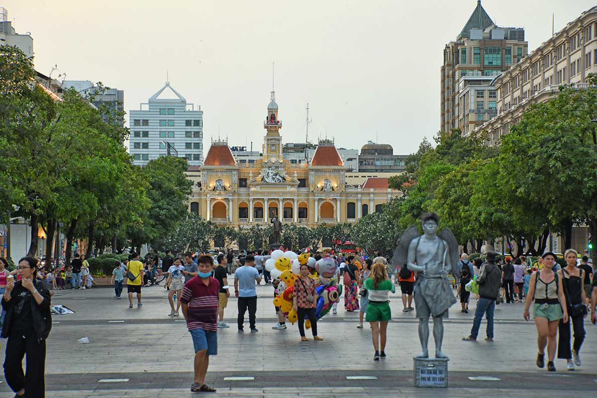 A pesar del tráfico caótico, Ciudad Ho Chi Minh ofrece varias zonas aptas para peatones donde puedes explorar cómodamente a pie: